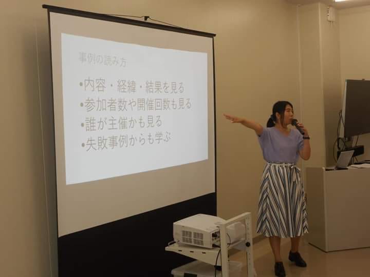 テーマごとにチームにわかれ、今日から具体的な企画の検討。私は先行事例の見方について、簡単にレクチャーしました。